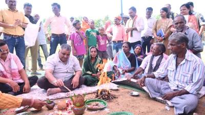 कृषि मंत्री नेताम ने मिट्टी एवं बीजों की पूजा की और ट्रैक्टर चलाकर बीजों की बुआई की