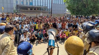 नोएडा सेक्टर-80 में कर्मचारियों का बवाल, पत्थरबाजी के बाद पुलिस का लाठीचार्ज