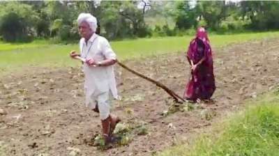कृषि मंत्री के जिले में खेत जोतता बुजुर्ग किसान, तस्वीर ने उठाए कई सवाल