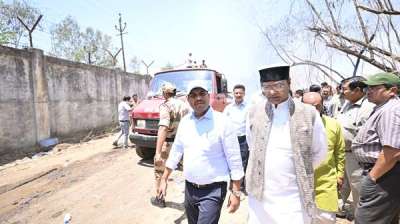 भेल परिसर में लगी आगजनी की सूचना पर मौके पर पहुंचे मंत्री सारंग