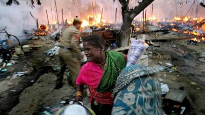 आग की लपटों में घिरी बस्ती, 25 झोपड़ियां जलकर खाक