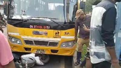 स्कूल बस और स्कूटी की टक्कर, महिला 50 मीटर तक घसीटी गई