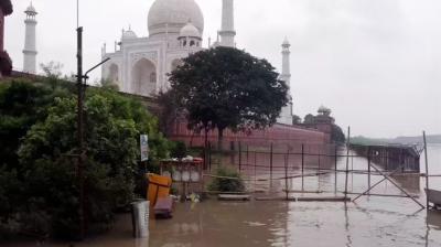 आगरा में रिकॉर्ड तोड़ बारिश और यमुना का उफान, ‘ताजमहल’ के नज़दीक तक पहुंचा पानी