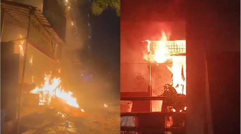 चार मंजिला इमारत में भीषण आग, दुकानों का सामान जलकर खाक