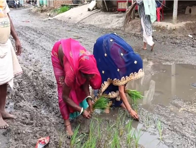 उमरिया में टूटी उम्मीदें, महिलाओं ने सड़क पर बोया धान, कहा- ‘यही है विकास’