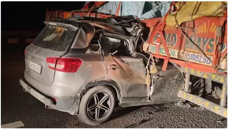 तेज रफ्तार ब्रेजा कार ट्रक से भिड़ी, ड्राइवर समेत तीनों की मौके पर मौत