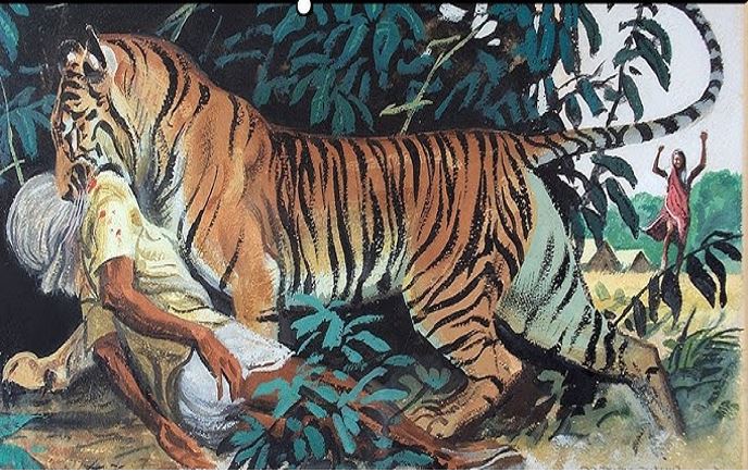 शिकार की घात में बैठे बाघ ने हमला किया