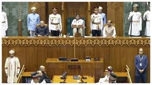 नई दिल्ली। बुधवार को संसद के संयुक्त सत्र में राष्ट्रपति मुर्मू का संबोधन किया। इस दौरान उन्होंने देश की उपलब्धियां गिनाईं। उन्होंने कहा, "संसद के इस सत्र को संबोधित करते हुए मुझे अत्यंत प्रसन्नता हो रही है। पिछला वर्ष भारत की तीव्र प्रगति और विरासत के उत्सव के रूप में यादगार रहा। पूरे देश में वंदे मातरम के 150 वर्ष पूरे होने का जश्न मनाया जा रहा है। नागरिक बंकिम चंद्र चटर्जी को उनकी इस महान प्रेरणा के लिए नमन कर रहे हैं। मैं सभी सांसदों को बधाई देती हूं कि संसद में इस विषय पर विशेष चर्चा हुई।"