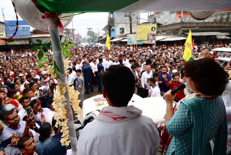 प्रियंका गांधी ने गौरव गोगोई के समर्थन में रोड शो किया