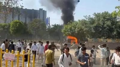 वेतन विवाद ने लिया हिंसक रूप: नोएडा में हजारों मजदूर सड़कों पर, पुलिस की गाड़ियां फूंकीं