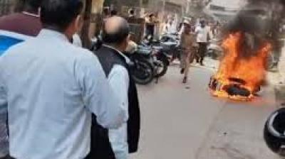 चलती बाइक में अचानक भड़की आग, जिला न्यायालय क्षेत्र में अफरा-तफरी